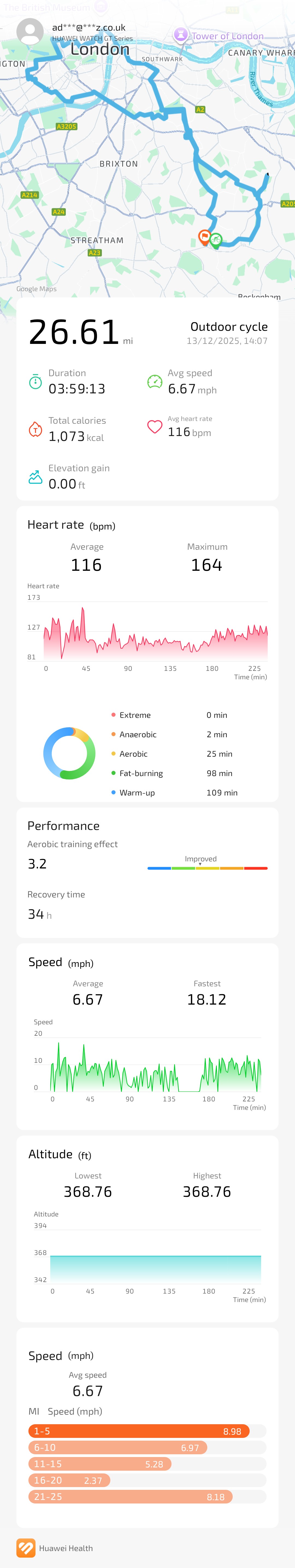 - Route: Sydenham – Ladywell – Peckham – Waterloo – Leicester Square – Hyde Park – Kensington – Chelsea – Vauxhall – Sydenham