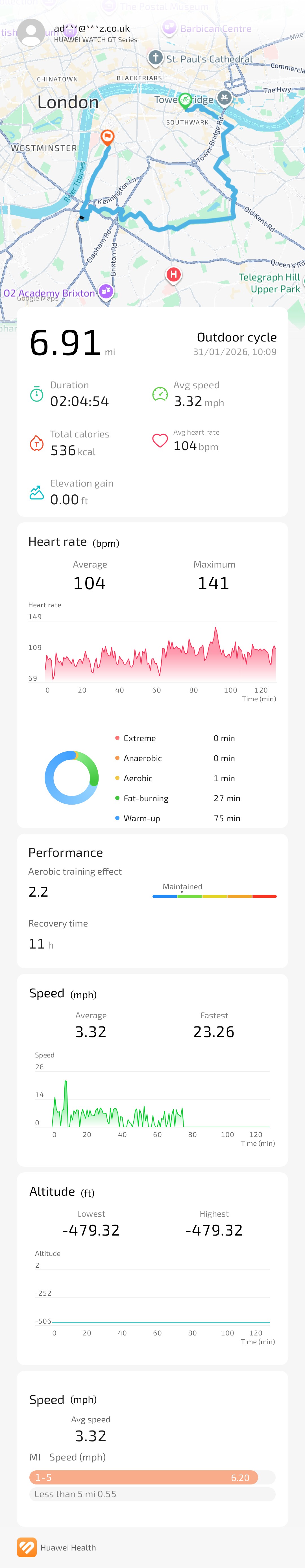 • Route: London Bridge – Burgess Park – Kennington Park – Vauxhall Park – Westminster Bridge – Embankment – London Bridge